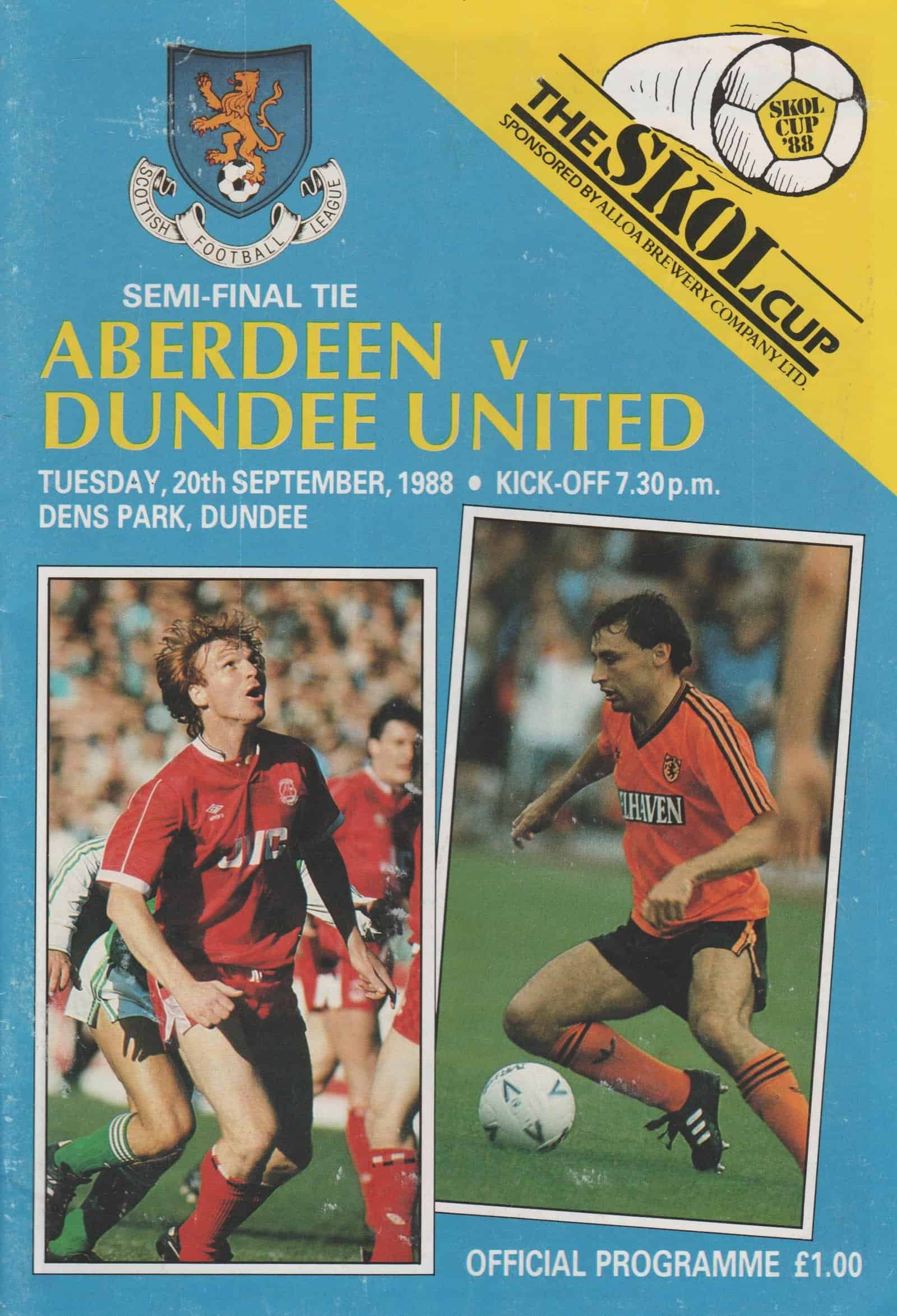 Match: Aberdeen v Dundee United Competition: Skol Cup Semi Final Date: 20-Sep-1988 Comments: Rating: 3 Condition: Slight marks on cover Weight in grams: 100