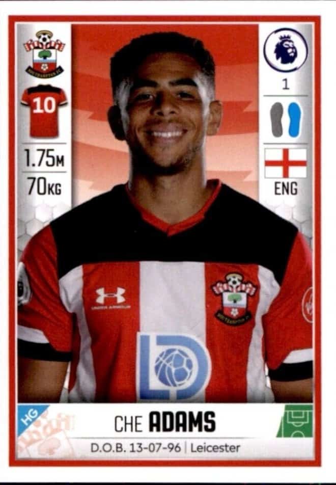 Title: Adams Che – 512 Club: Southampton Player: Che Adams Collection number: Merlin Premier League 2020 – 512 Rating: 4 Condition: Very good Weight in grams: 10