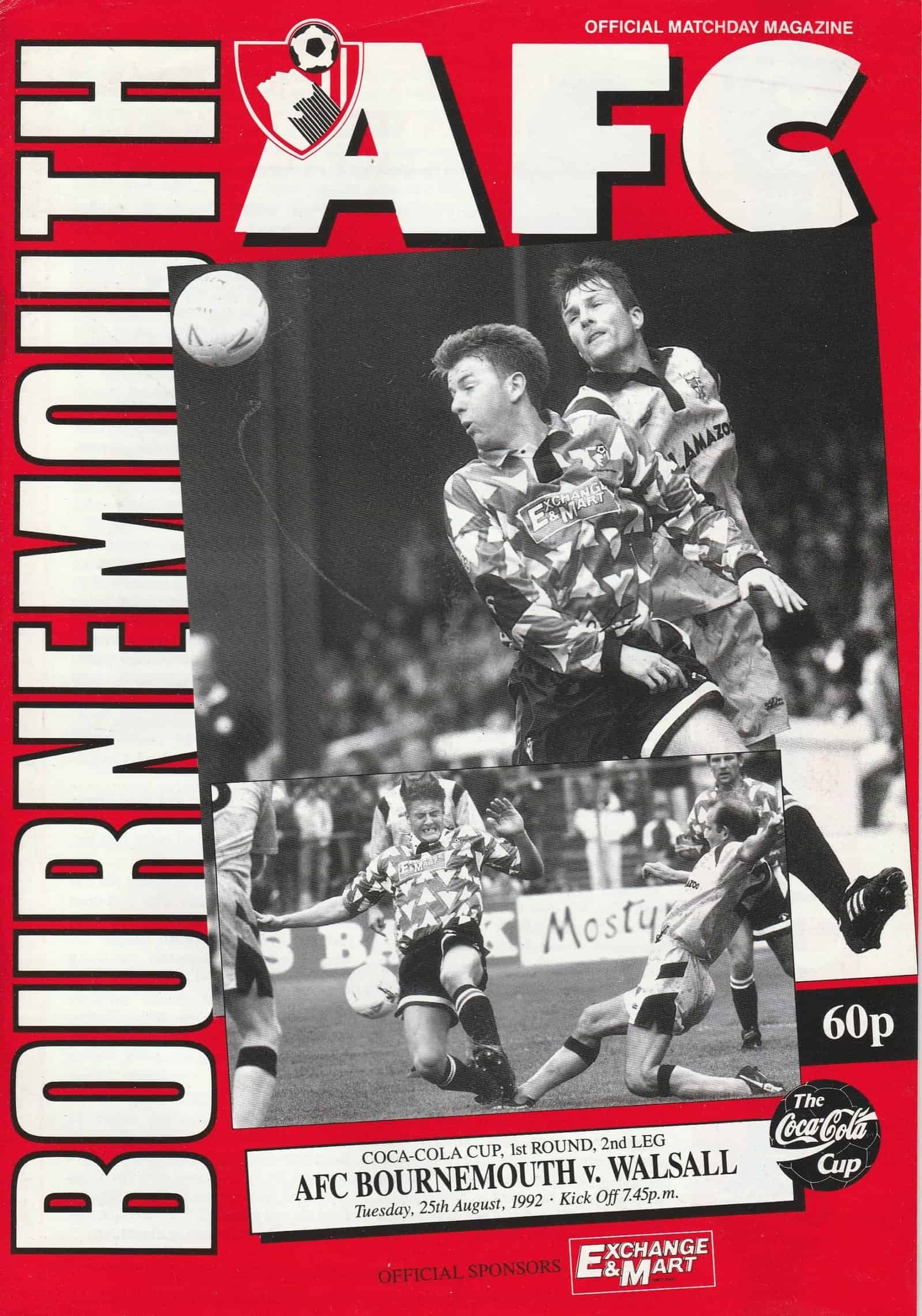 Match: AFC Bournemouth v Walsall Competition: Coca Cola Cup 1st Round 2nd leg Date: 25-08-1992 Comments: Rating: 4 Condition: Very good Weight in grams: 60