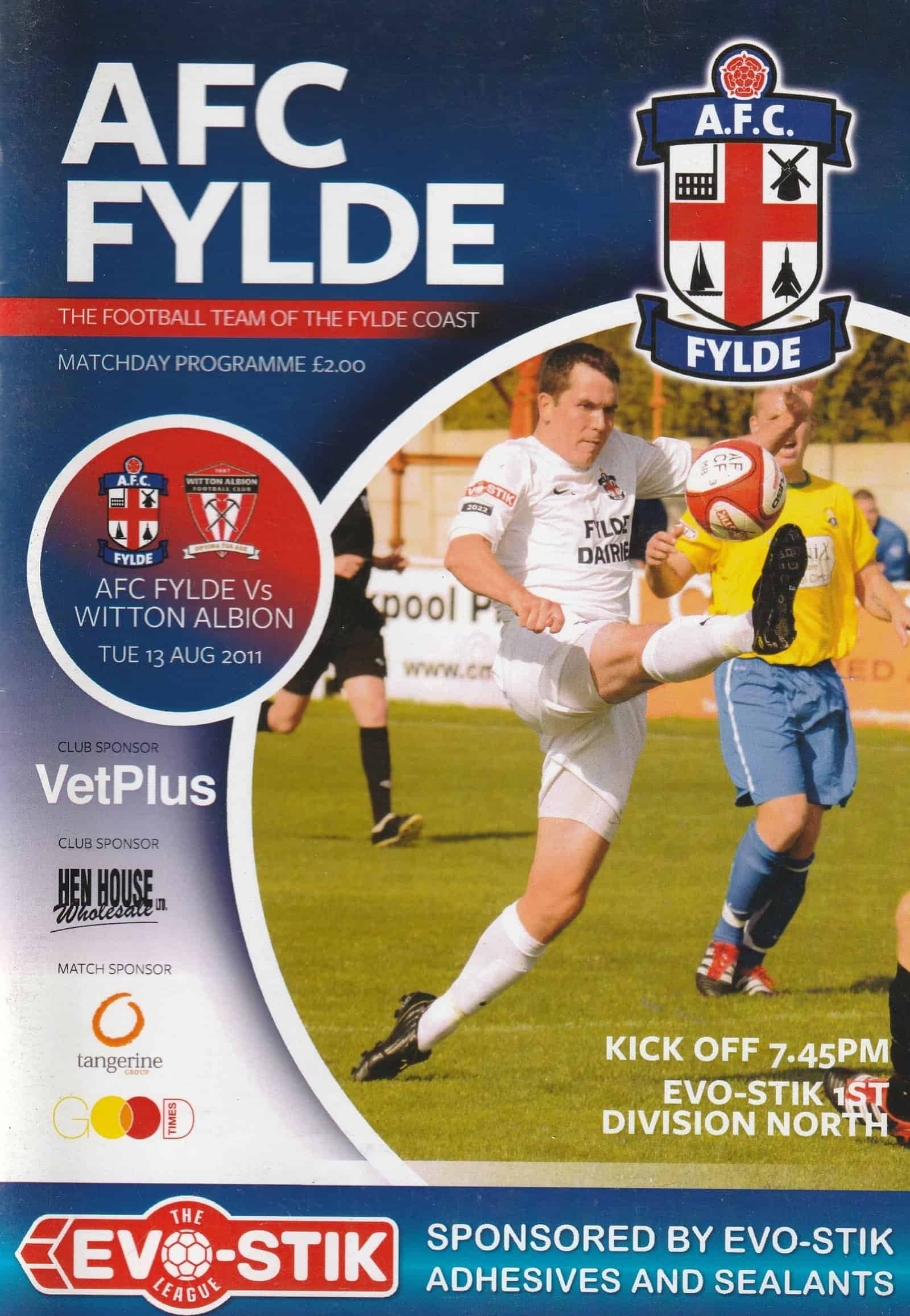 Match: AFC Fylde v Witton Albion Competition: Evo Stik Division 1 North Date: 13-Aug-2011 Comments: Rating: 4 Condition: Very good Weight in grams:240