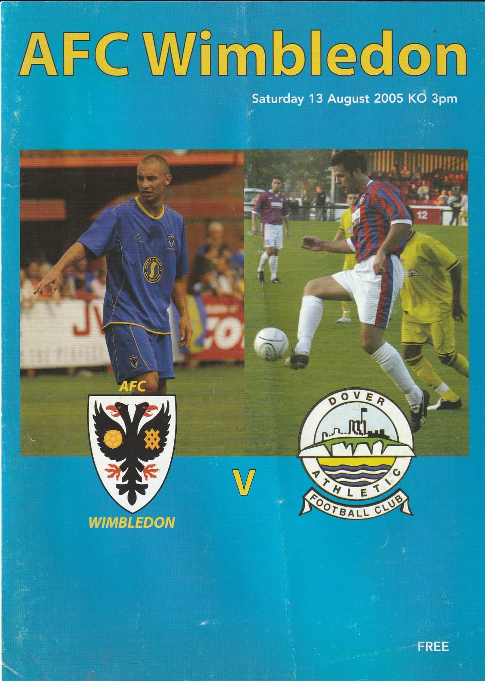 Match: AFC Wimbledon v Dover Athletic Competition: Friendly Date: 13-Aug-2005 Comments: 4 page issue Rating: 3 Condition: Fold Weight in grams: 60
