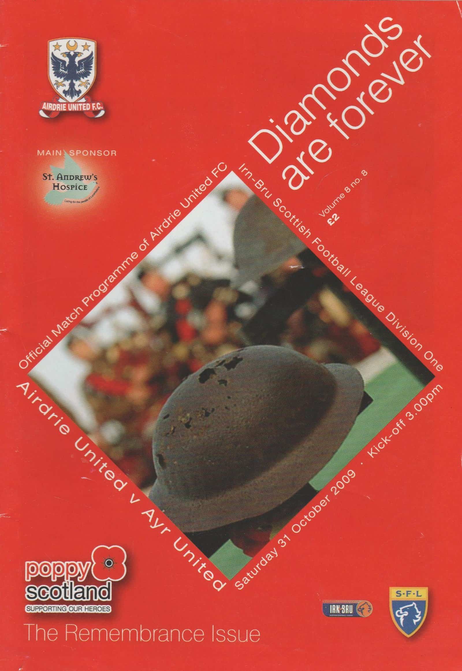 Match: Airdrie United v Ayr United Competition: Scottish League Division 1 Date: 29-Oct-2009 Comments: Rating: 3 Condition: Few faint marks on cover Weight in grams: 100