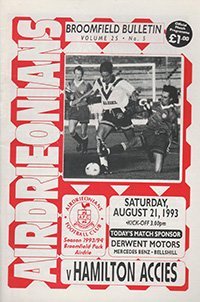 Match: Airdrieonians v Hamilton Academicals Competition: Scottish League Division 1 Date: 21-08-1993 Comments: Rating: 4 Condition: Slight fold Weight in grams: 80