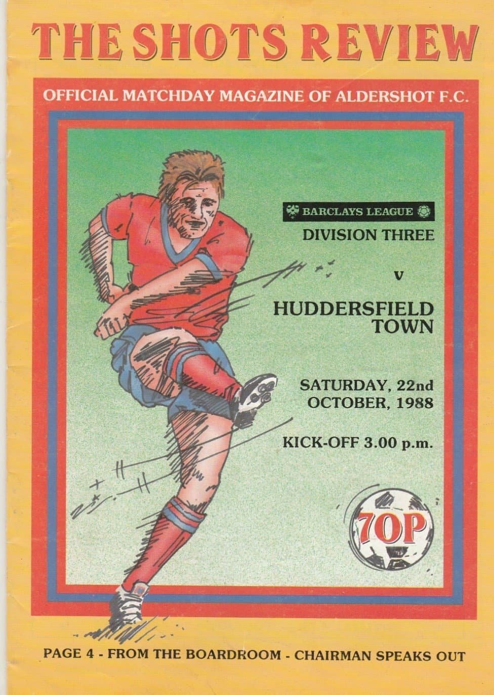 Match: Aldershot v Huddersfield Town Competition: League Division 3 Date: 22-Oct-1988 Comments: Rating: 3 Condition: Marks on back Weight in grams: 100
