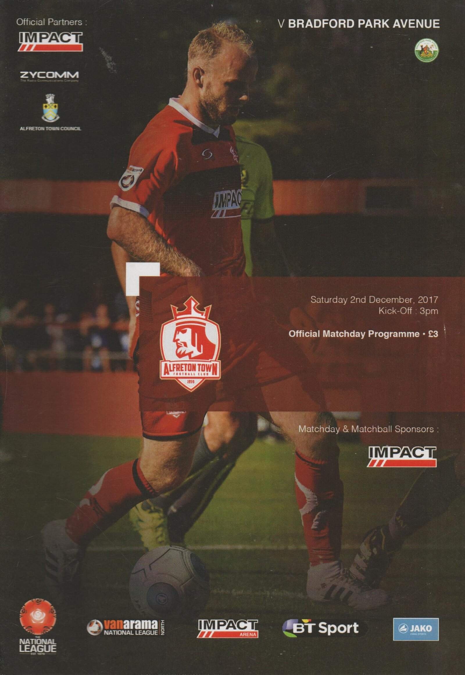 Match: Alfreton Town v Bradford Park Avenue Competition: Vanarama National League North Date: 02-Dec-2017 Comments: Rating: 4 Condition: Very good Weight in grams: 60
