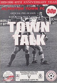 Match: Alfreton Town v Lincoln City Competition: Friendly Date: 24-07-1999 Comments: Rating: 5 Condition: Excellent Weight in grams: 60