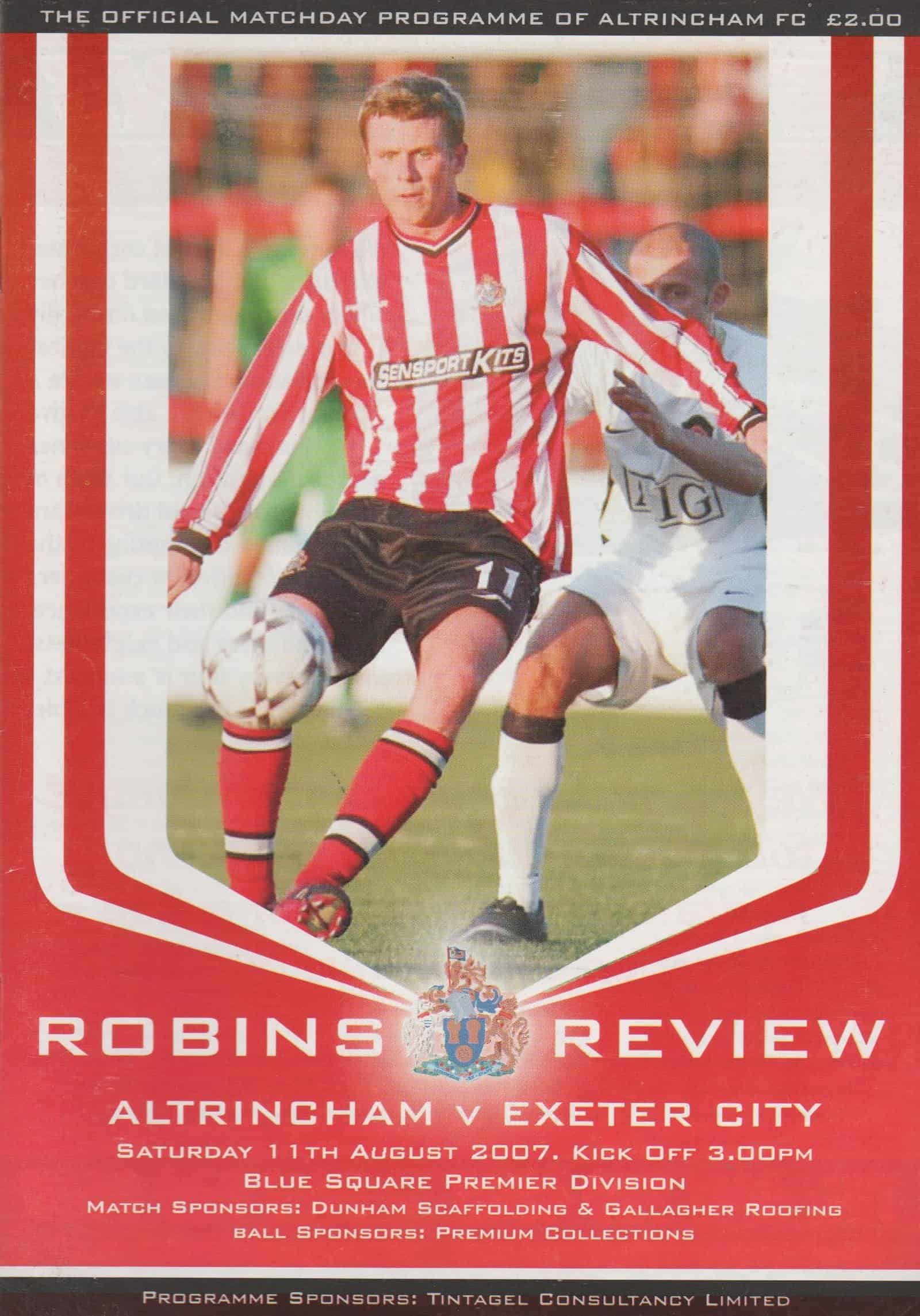 Match: Altrincham v Exeter City Competition: Blue Square Premier Date: 11-Aug-2007 Comments: Rating: 4 Condition: Very good Weight in grams: 100