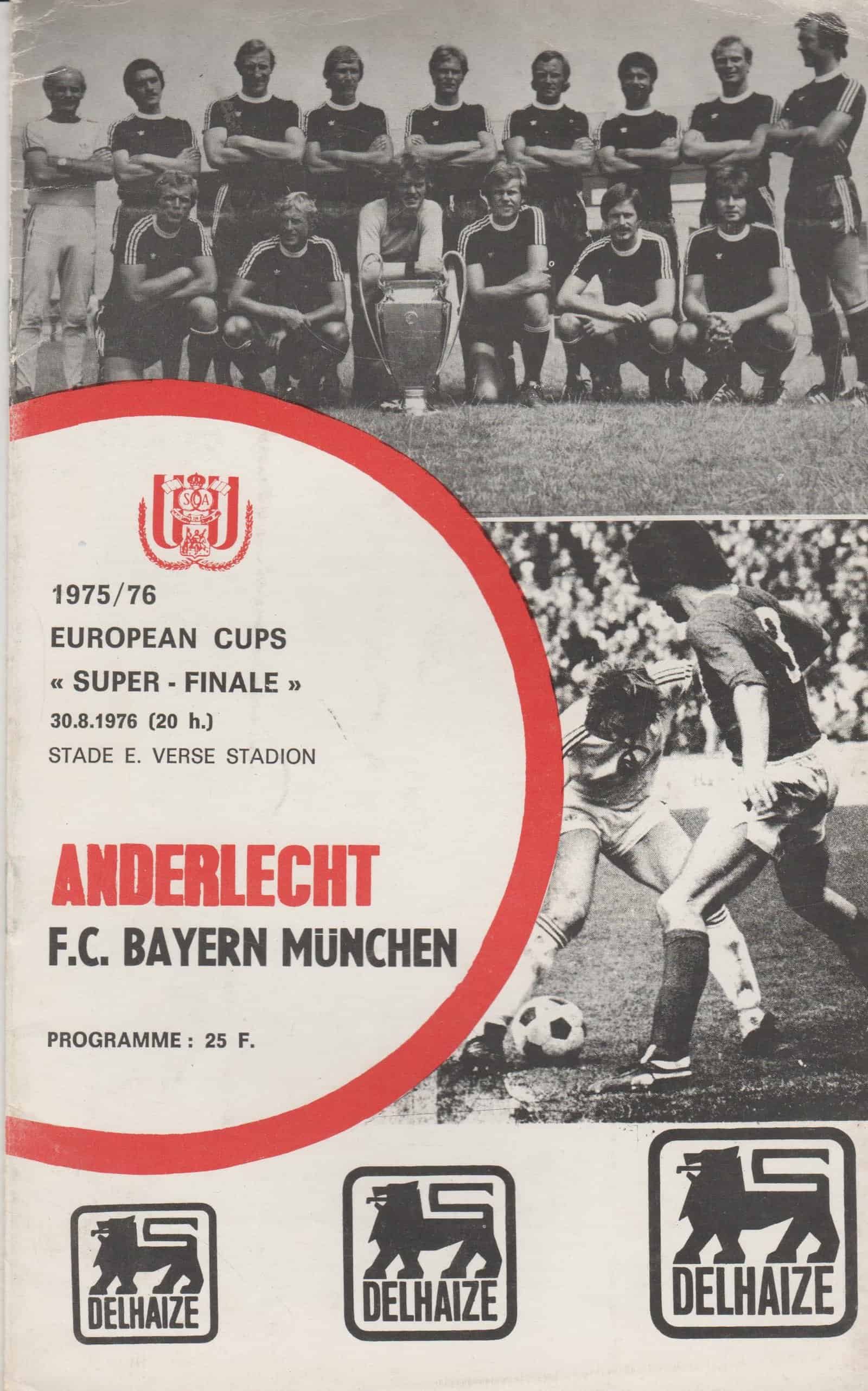 Match: Anderlecht v Bayern Munich Competition: European Super Cup Date: 30-Aug-1976 Comments: Rating: 4 Condition: Faint corner crease on cover Weight in grams: 60