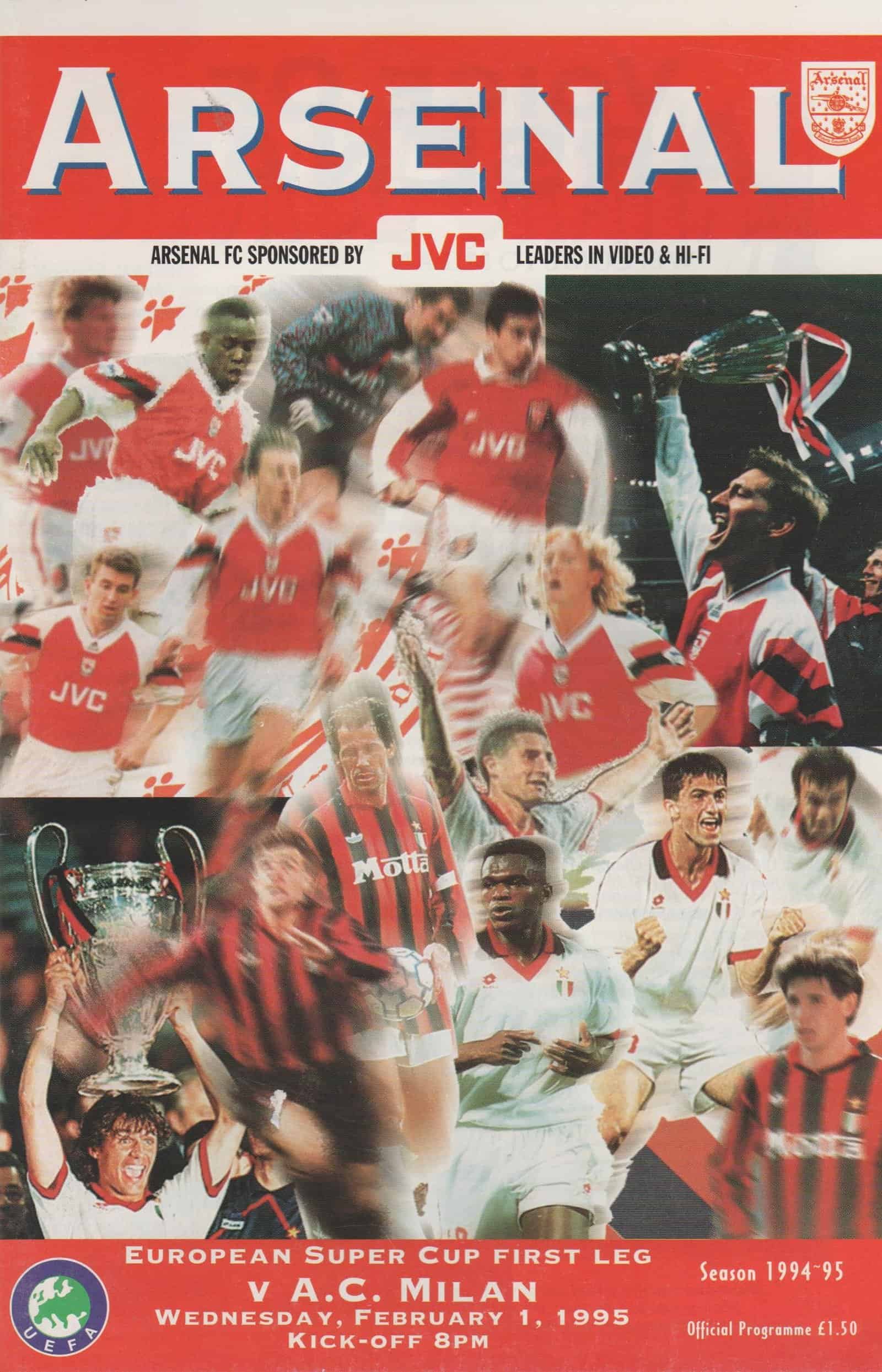 Match: Arsenal v AC Milan Competition: European Super League Cup 1st leg Date: 01-Feb-1995 Comments: Rating: 4 Condition: Very good Weight in grams: 120