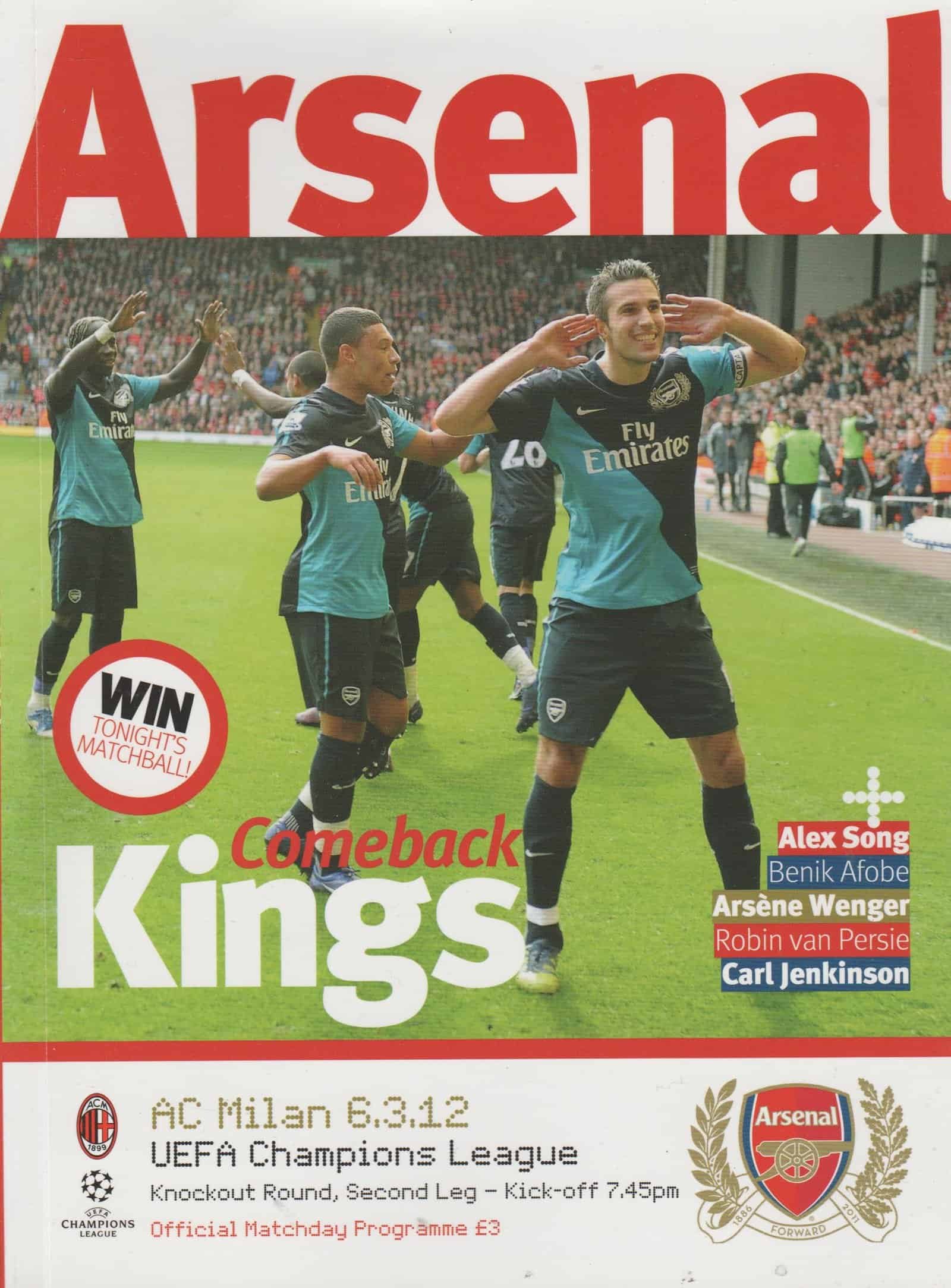 Match: Arsenal v AC Milan Competition: UEFA Champions League Knockout Round 2nd leg Date: 06-03-2012 Comments: Rating: 4 Condition: Very good Weight in grams: 200