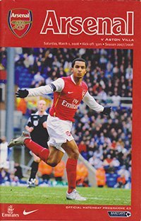 Match: Arsenal v Aston Villa Competition: Premier League Date: 01-03-2008 Comments: Rating: 5 Condition: Excellent Weight in grams: 200