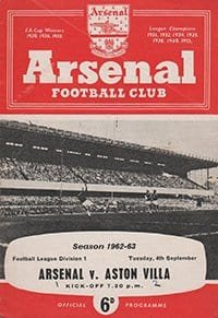 Match: Arsenal v Aston Villa Competition: League Division 1 Date: 04-09-1962 Comments: Rating: 4 Condition: Score on face Weight in grams: 40