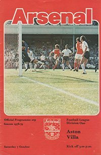 Match: Arsenal v Aston Villa Competition: League Division 1 Date: 07-10-1978 Comments: Rating: 3 Condition: Slight fold Weight in grams: 60