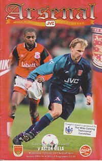Match: Arsenal v Aston Villa Competition: Coca-Cola League Cup Semi final 1st leg Date: 14-02-1996 Comments: Rating: 5 Condition: Very good Weight in grams: 100