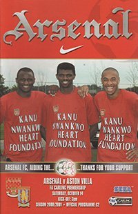 Match: Arsenal v Aston Villa Competition: Premier League Date: 14-10-2000 Comments: Rating: 5 Condition: Excellent Weight in grams: 200