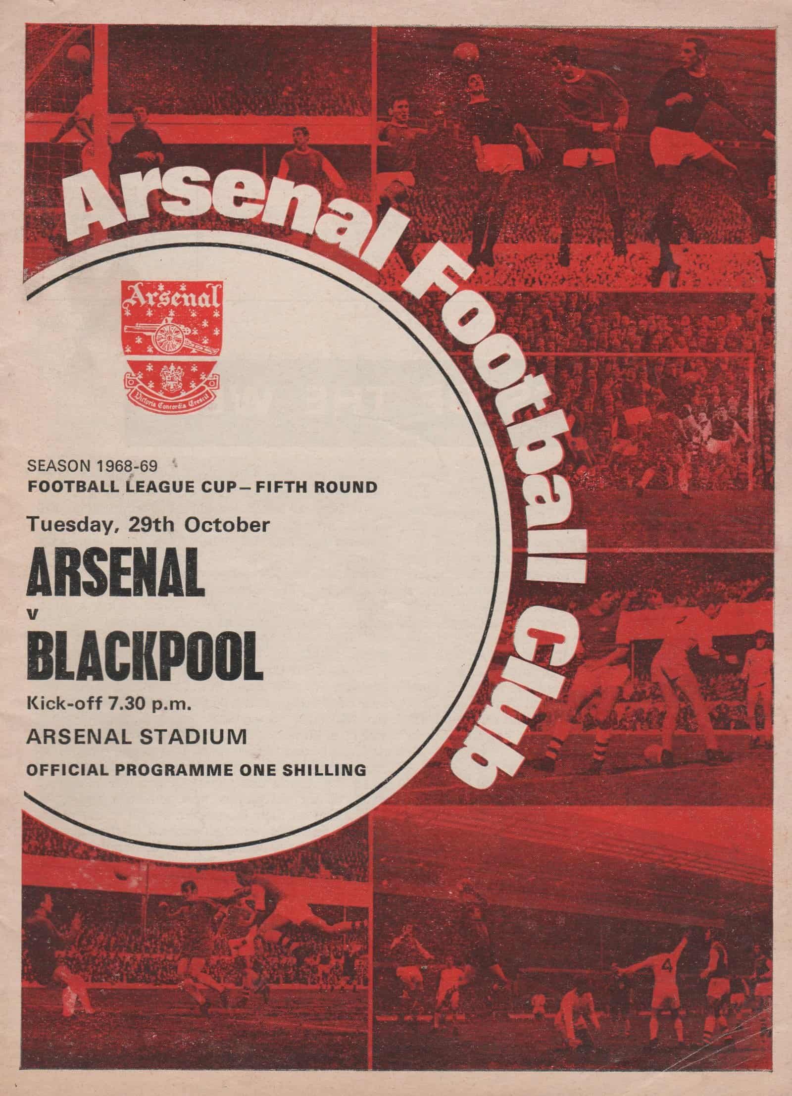 Match: Arsenal v Blackpool Competition: League Cup 5th Round Date: 29-Oct-1968 Comments: Rating: 4 Condition: Faint corner turn on cover Weight in grams: 60