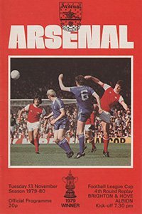 Match: Arsenal v Brighton & Hove Albion Competition: League Cup 4th Round Replay Date: 13-11-1979 Comments: Rating: 4 Condition: Slight corner fold Weight in grams: 80