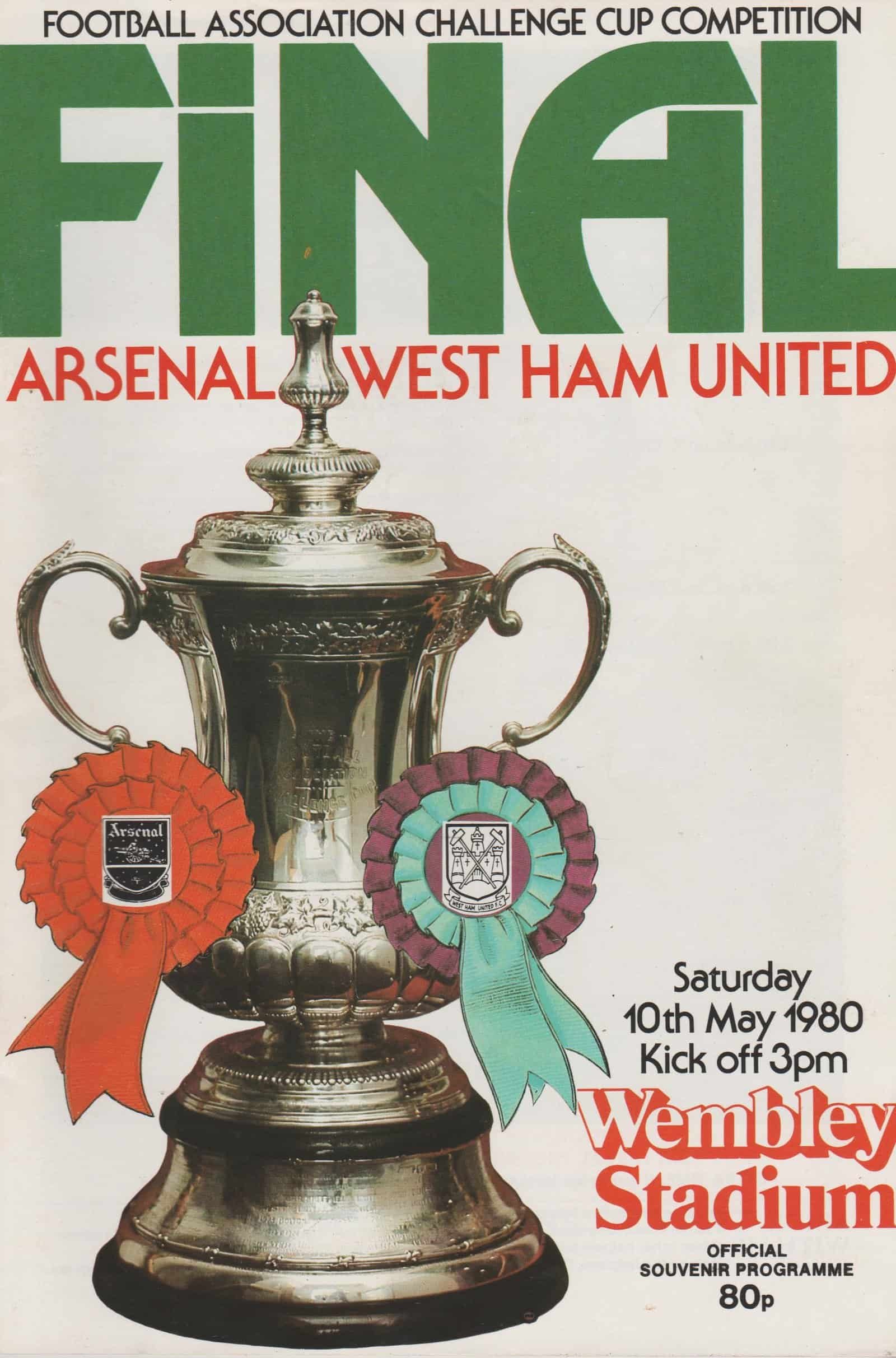 Match: Arsenal v West Ham United Competition: FA Cup Final Date: 10-May-1980 Comments: Rating: 4 Condition: Very Good Weight in grams: 140