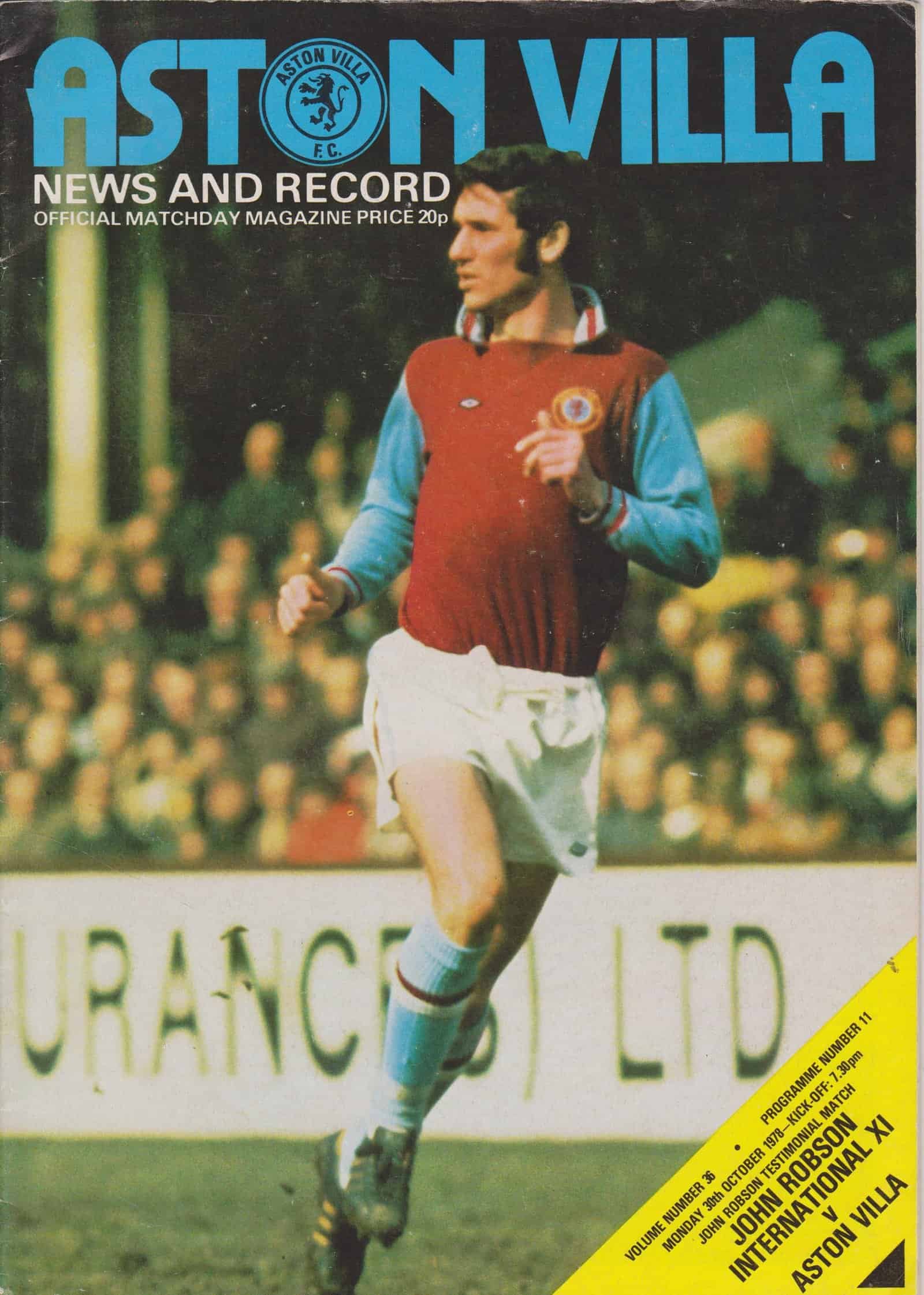 Match: Aston Villa v John Robson International XI Competition: Friendly Date: 30-10-1978 Comments: Rating: 5 Condition: Excellent Weight in grams: 120