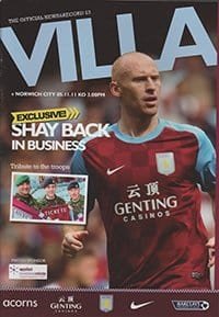 Match: Aston Villa v Norwich City Competition: Premier League Date: 05-11-2011 Comments: Rating: 5 Condition: Excellent Weight in grams: 200