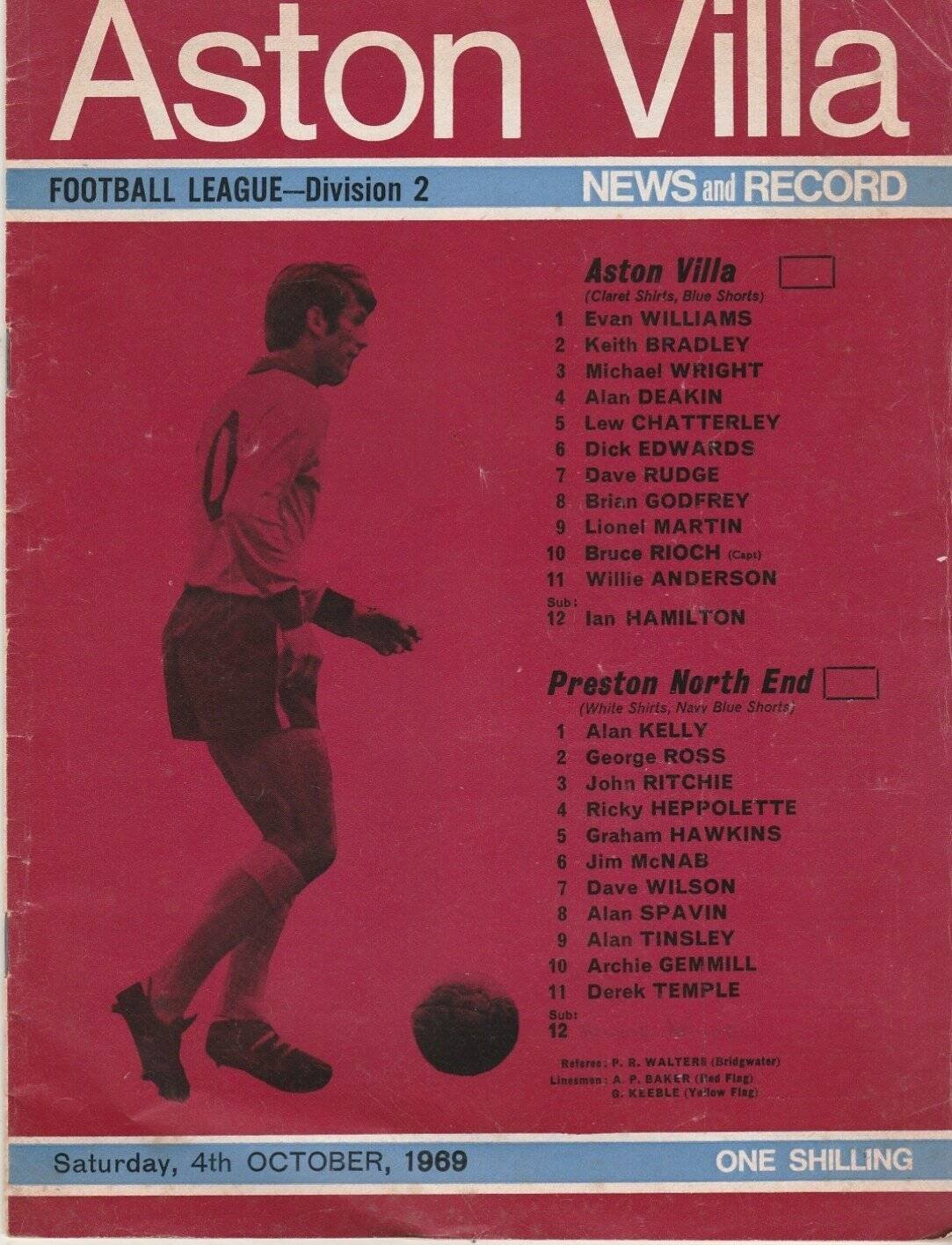 Match: Aston Villa v Preston North End Competition: League Division 2 Date: 04-Oct-1969 Comments: Rating: 3 Condition: Folds Weight in grams: 100