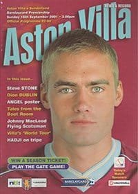 Match: Aston Villa v Sunderland Competition: Premier League Date: 37150 Comments: Rating: 5 Condition: Excellent Team Sheet Available: N Ticket Available: N Weight in grams: 100