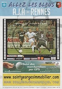 Match: Auxerre v Stade Rennais Competition: French 1st Division Date: 28-01-2006 Comments: Rating: 4 Condition: Slight fold Weight in grams: 60