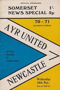 Match: Ayr United v Newcastle United Competition: Friendly Date: 18-11-1970 Comments: Opening of lights Rating: 4 Condition: Slight mark on back cover Weight in grams: 60