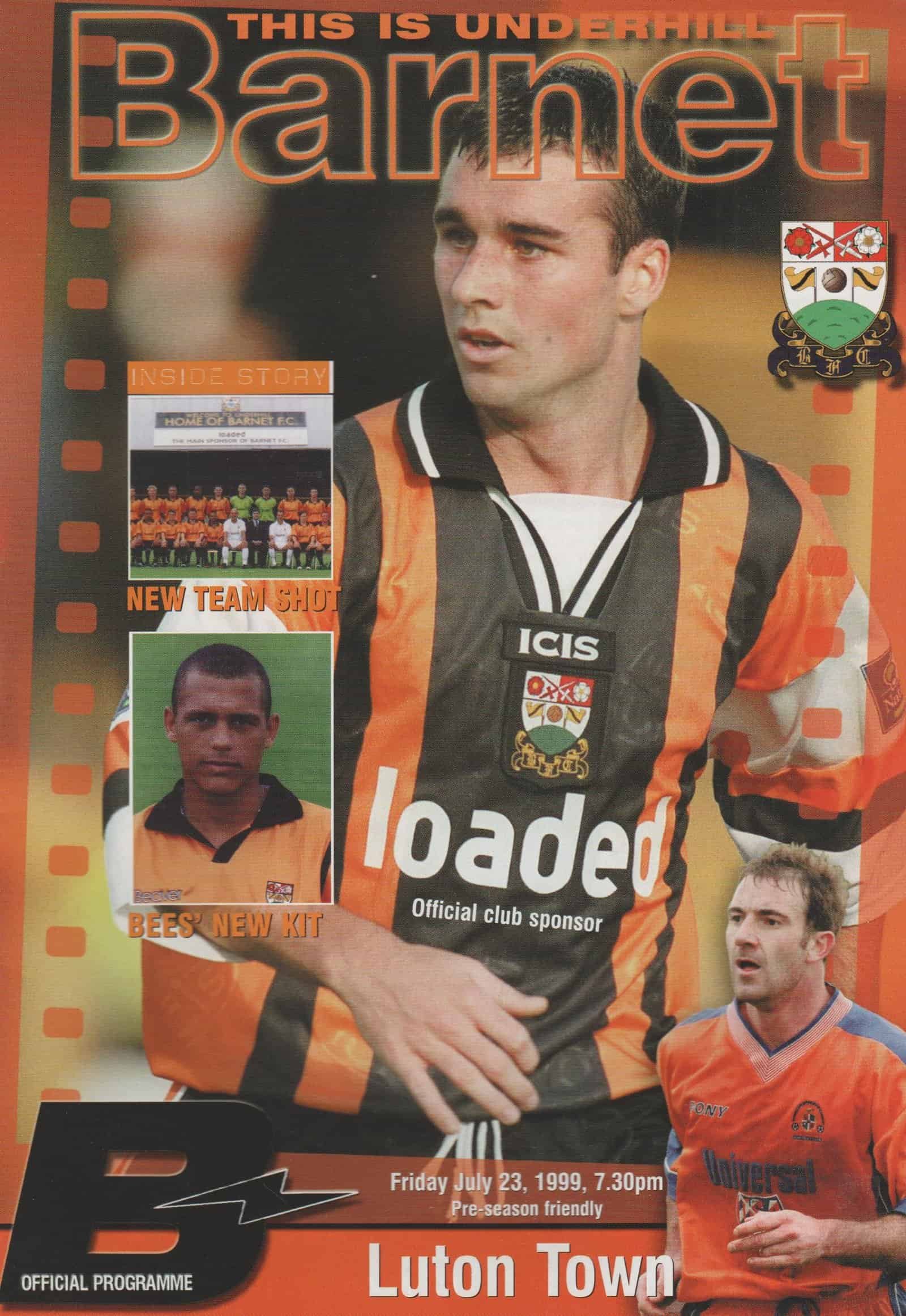 Match: Barnet v Luton Town Competition: Friendly Date: 23-Jul-1999 Comments: Rating: 4 Condition: Very good Weight in grams: 80