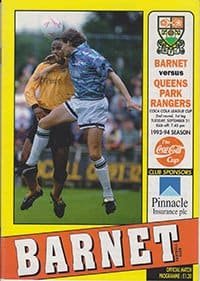 Match: Barnet v Queens Park Rangers Competition: Coca-Cola League Cup 2nd Round 1st leg Date: 21-09-1993 Comments: Rating: 4 Condition: Very good Weight in grams: 60