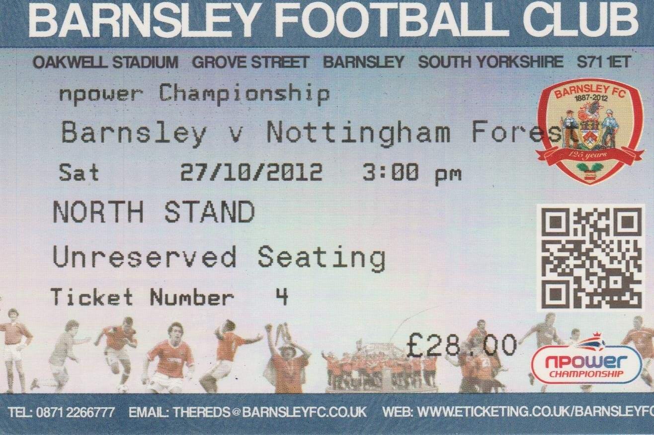 Match: Barnsley v Nottingham Forest Competition: League Championship Date: 27-Oct-2012 Comments: Rating: 4 Condition: Very good Weight in grams: 10