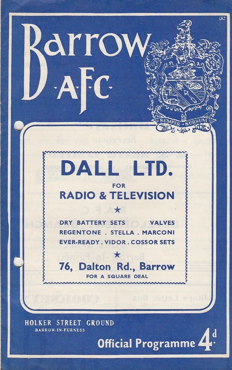 Match: Barrow v Gillingham Competition: League Division 4 Date: 17-Nov-1962 Comments: Rating: 3 Condition: Punched holes Weight in grams: 40
