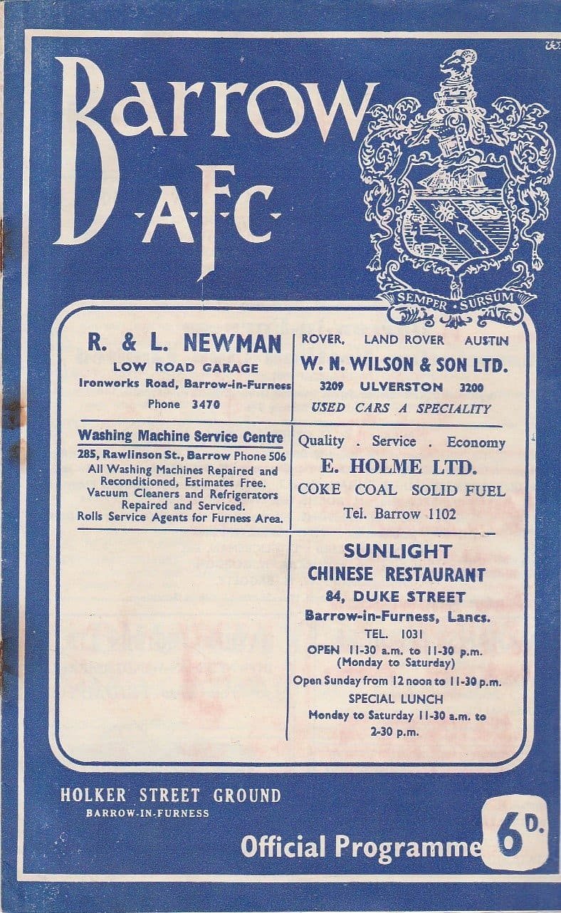 Match: Barrow v Hartlepools United Competition: League Division 4 Date: 26-Sep-1966 Comments: Rating: 3 Condition: Rusty staples, stains/marks throughout, fold/rippling Weight in grams: 40