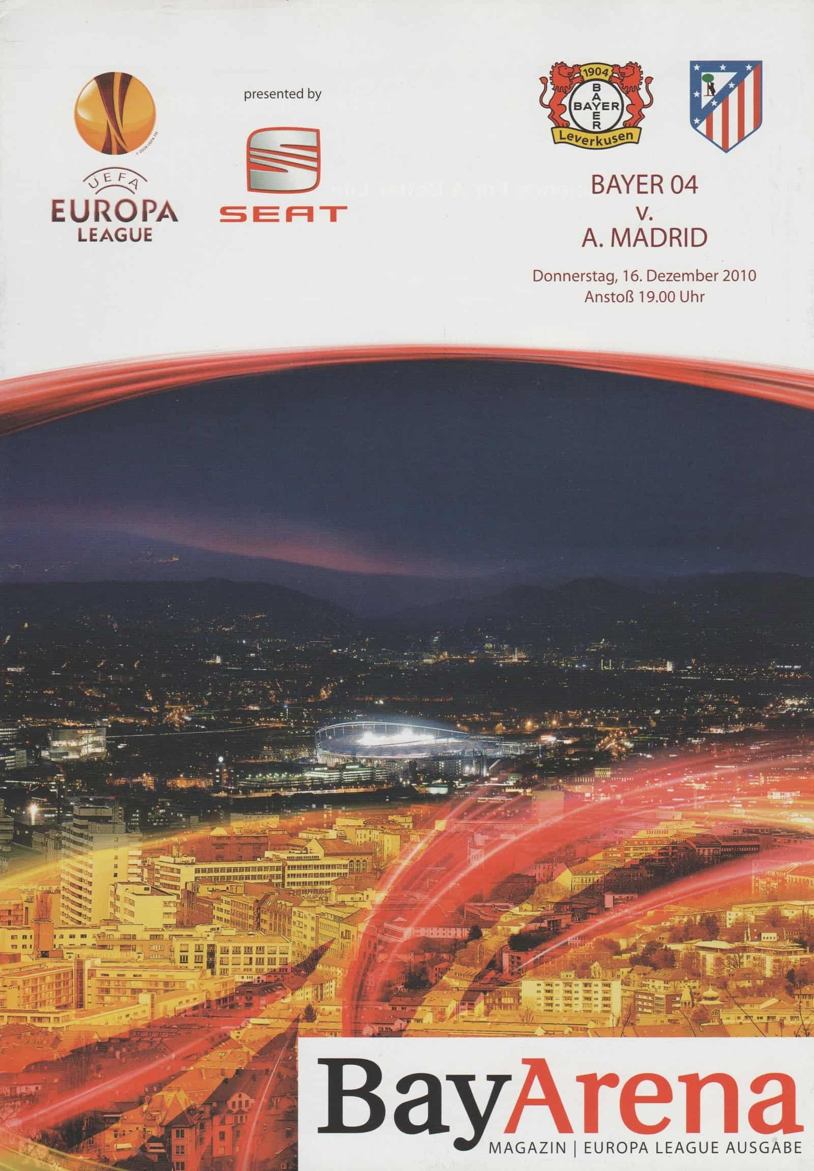 Match: Bayer 04 Leverkusen v Atletico Madrid Competition: Europa League Group B Date: 16-Dec-2010 Comments: Rating: 4 Condition: Very good Weight in grams: 120