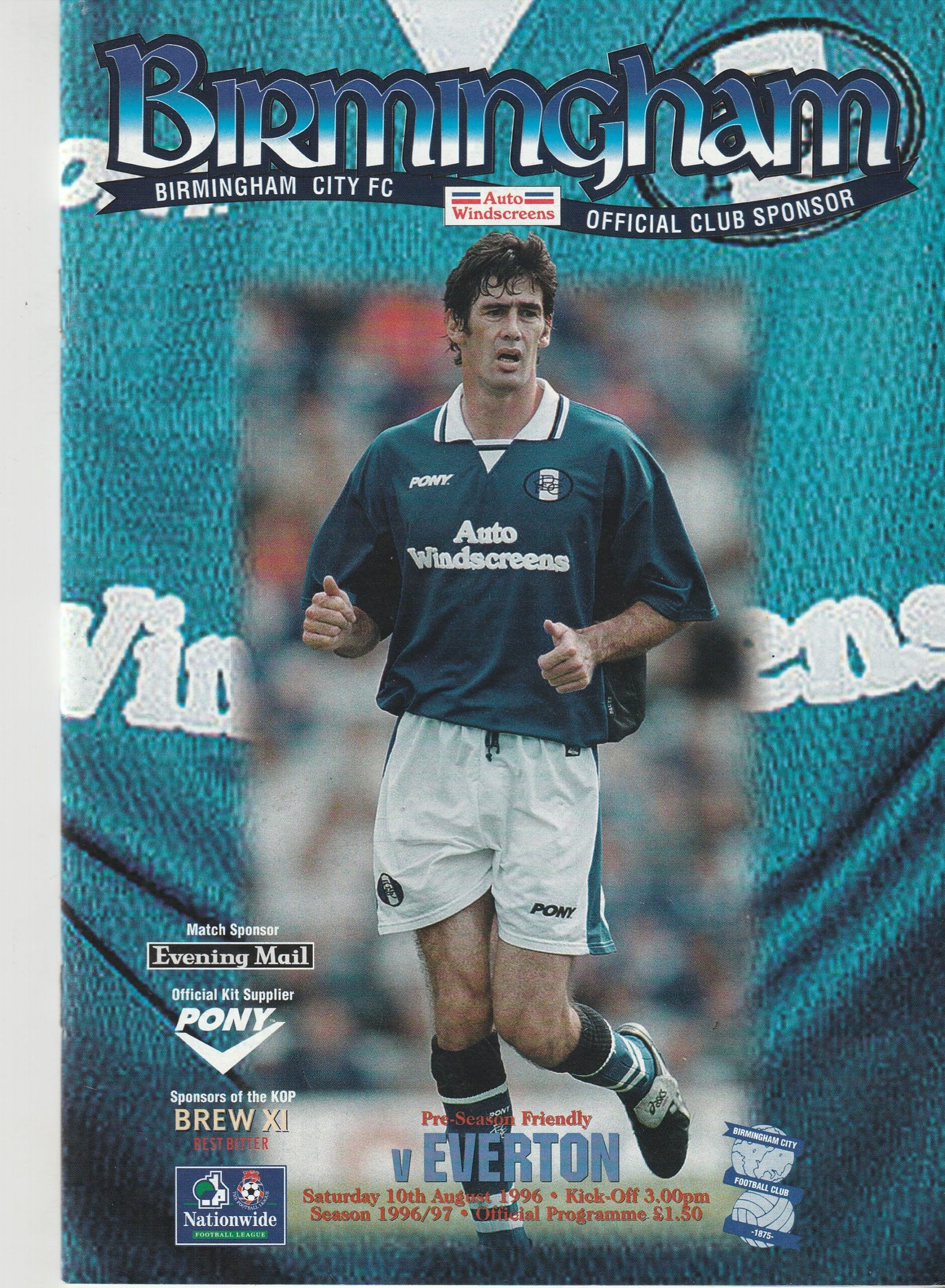 Match: Birmingham City v Everton Competition: Friendly Date: 10-Aug-1996 Comments: Rating: 4 Condition: Very good Weight in grams: 180