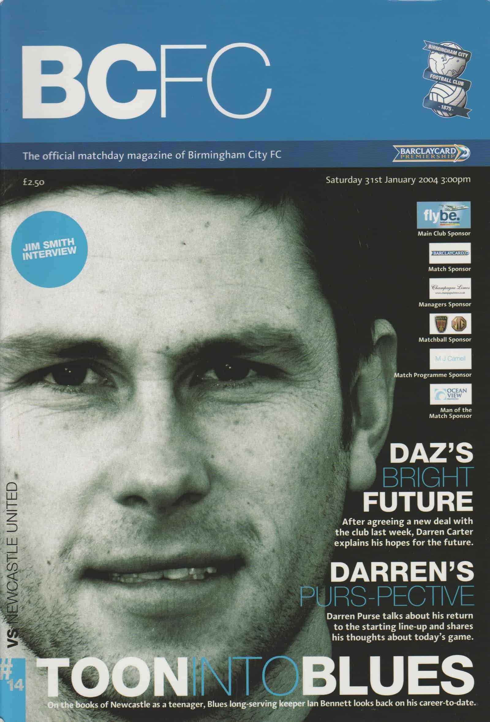 Match: Birmingham City v Newcastle United Competition: Premier League Date: 31-01-2004 Comments: Rating: 4 Condition: Faint crease on cover Weight in grams: 140