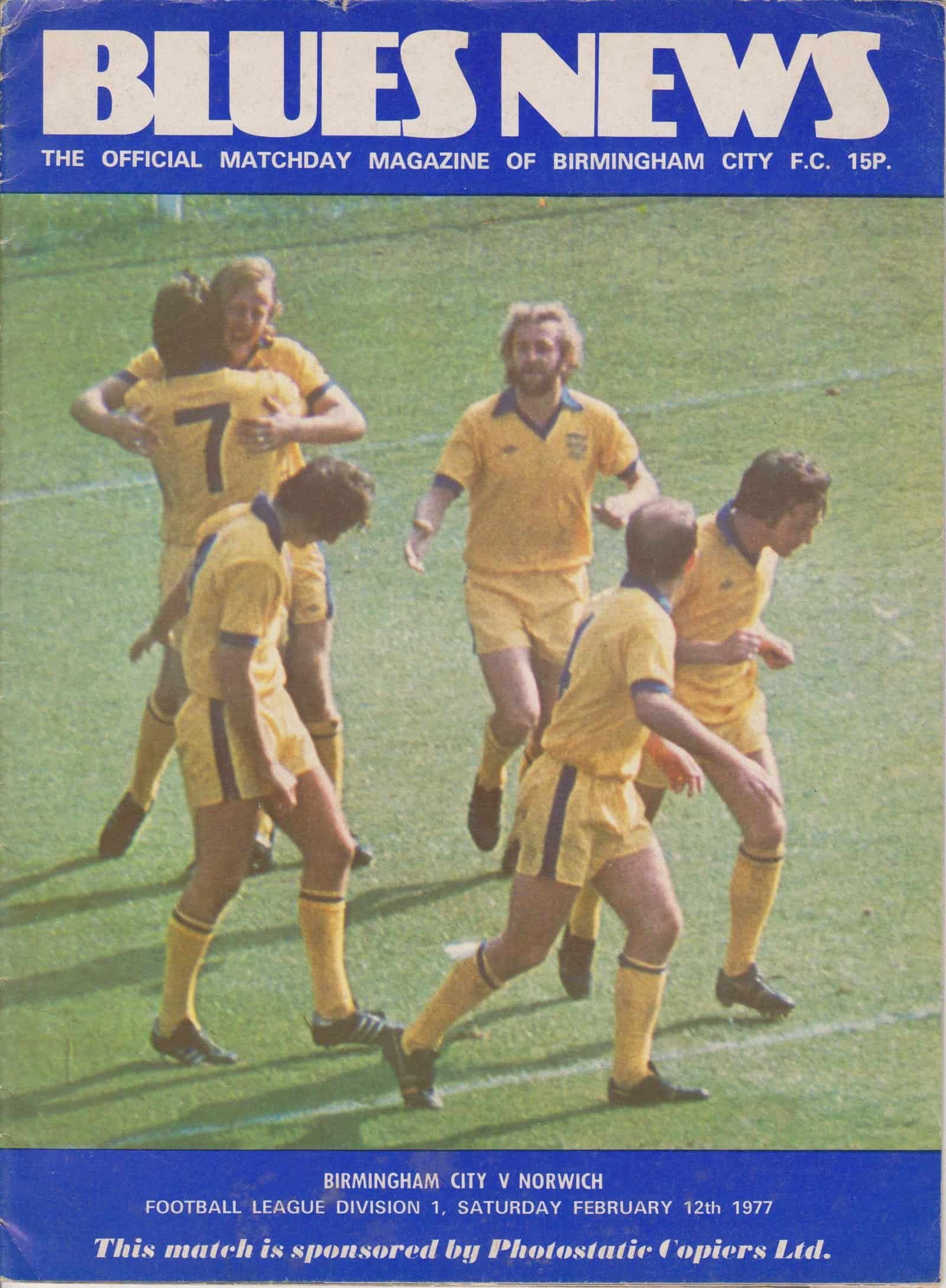 Match: Birmingham City v Norwich City Competition: League Division 1 Date: 12-02-1977 Comments: Rating: 3 Condition: Good Weight in grams: 40