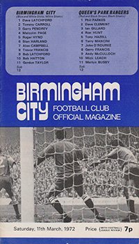 Match: Birmingham City v Queens Park Rangers Competition: League Division 2 Date: 11-03-1972 Comments: Rating: 4 Condition: Very good Weight in grams: 40