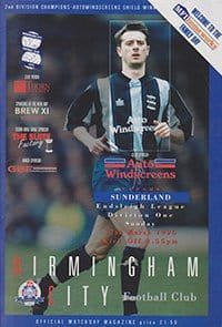 Match: Birmingham City v Sunderland Competition: League Division 1 Date: 17-03-1996 Comments: Rating: 5 Condition: Excellent Weight in grams: 140