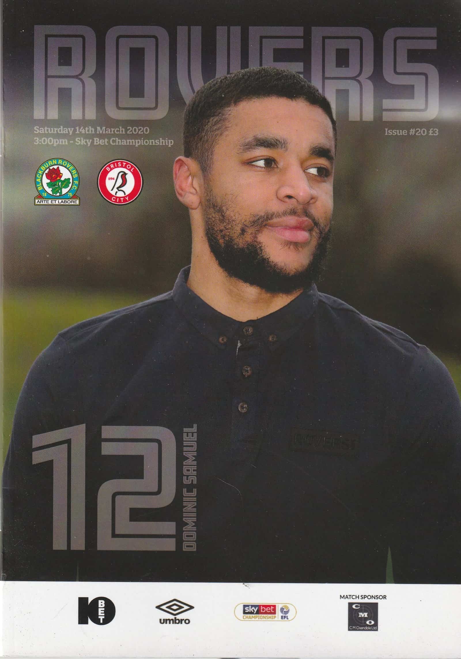 Match: Blackburn Rovers v Bristol City Competition: League Championship Date: 14-Mar-2020 Comments: Rating: 4 Condition: Very good Weight in grams: 200