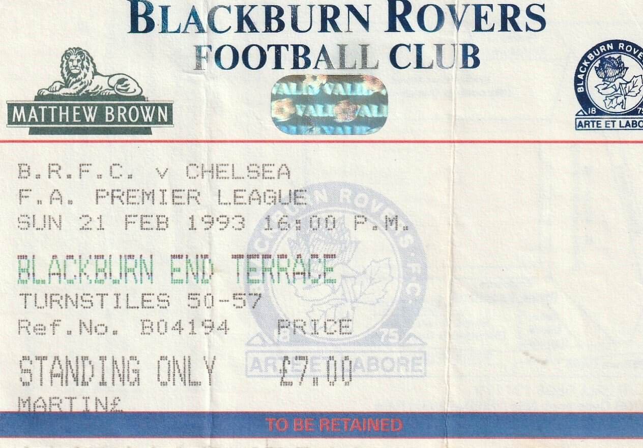 Match: Blackburn Rovers v Chelsea Competition: Premier League Date: 21-Feb-1993 Comments: Rating: 3 Condition: Folds Weight in grams: 20