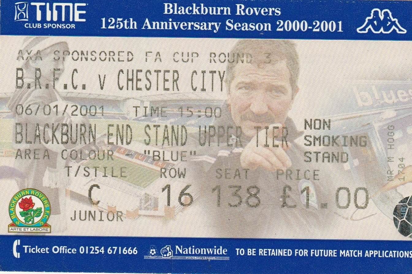 Match: Blackburn Rovers v Chester City Competition: FA Cup 3rd Round Date: 06-Jan-2001 Comments: Rating: 4 Condition: Very good Weight in grams: 20