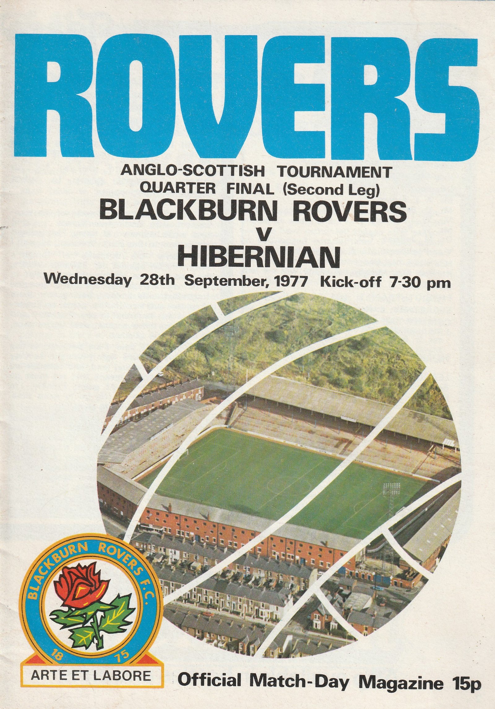 Match: Blackburn Rovers v Hibernian Competition: Anglo Scottish Cup Quarter Final 2nd leg Date: 28-09-1977 Comments: Rating: 4 Condition: Very good Weight in grams: 60