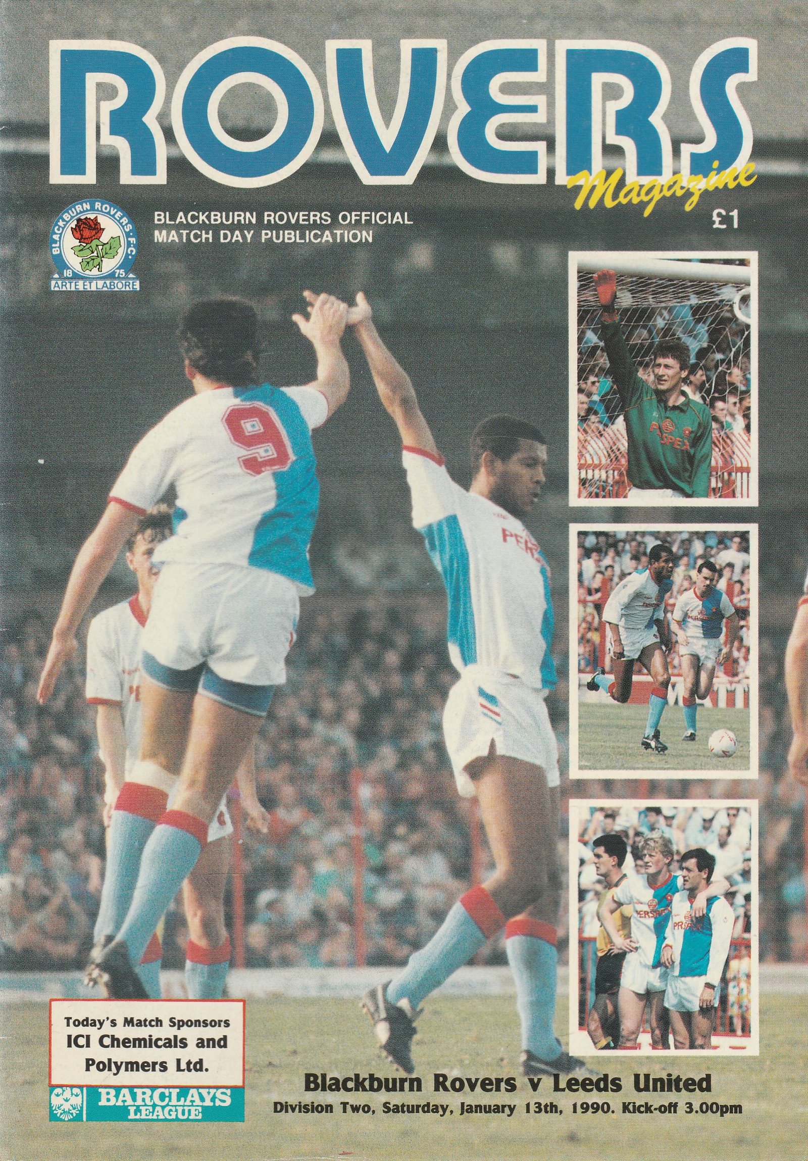 Match: Blackburn Rovers v Leeds United Competition: League Division 2 Date: 13-Jan-1990 Comments: Rating: 4 Condition: Very good Weight in grams: 140