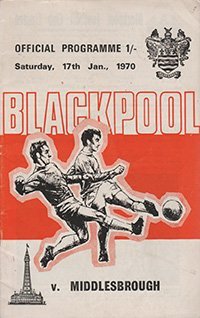 Match: Blackpool v Middlesbrough Competition: League Division 2 Date: 17-01-1970 Comments: Rating: 3 Condition: Slight fold, slight marks on front and back, nick on back cover Weight in grams: 60