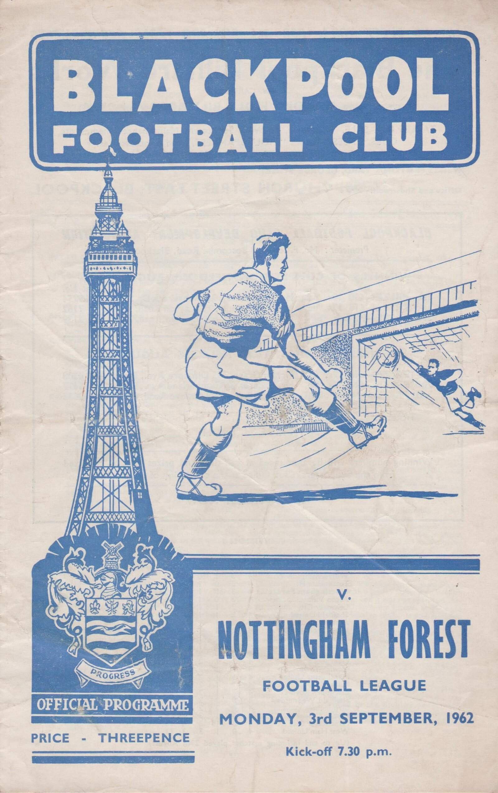 Match: Blackpool v Nottingham Forest Competition: League Division 1 Date: 03-Sep-1962 Comments: Rating: 3 Condition: Creases Weight in grams: 40