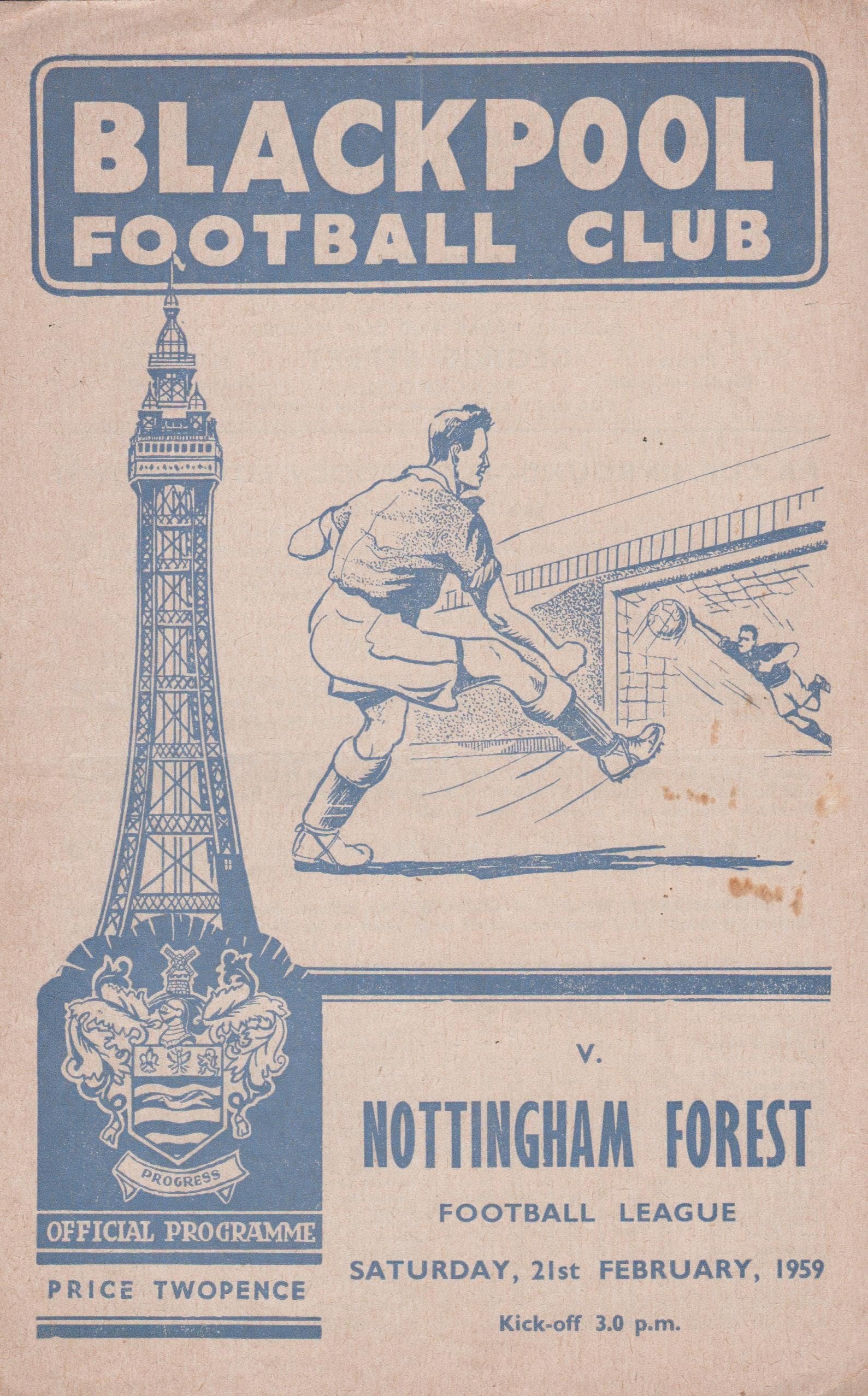 Match: Blackpool v Nottingham Forest Competition: League Division 1 Date: 21-Feb-1959 Comments: Rating: 3 Condition: Marks on face Weight in grams: 40