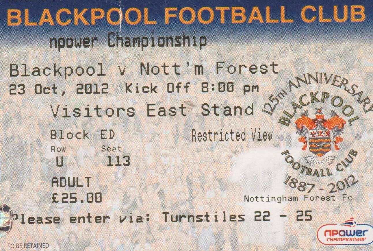 Match: Blackpool v Nottingham Forest Competition: League Championship Date: 23-Oct-2012 Comments: Rating: 3 Condition: Crease Weight in grams: 10