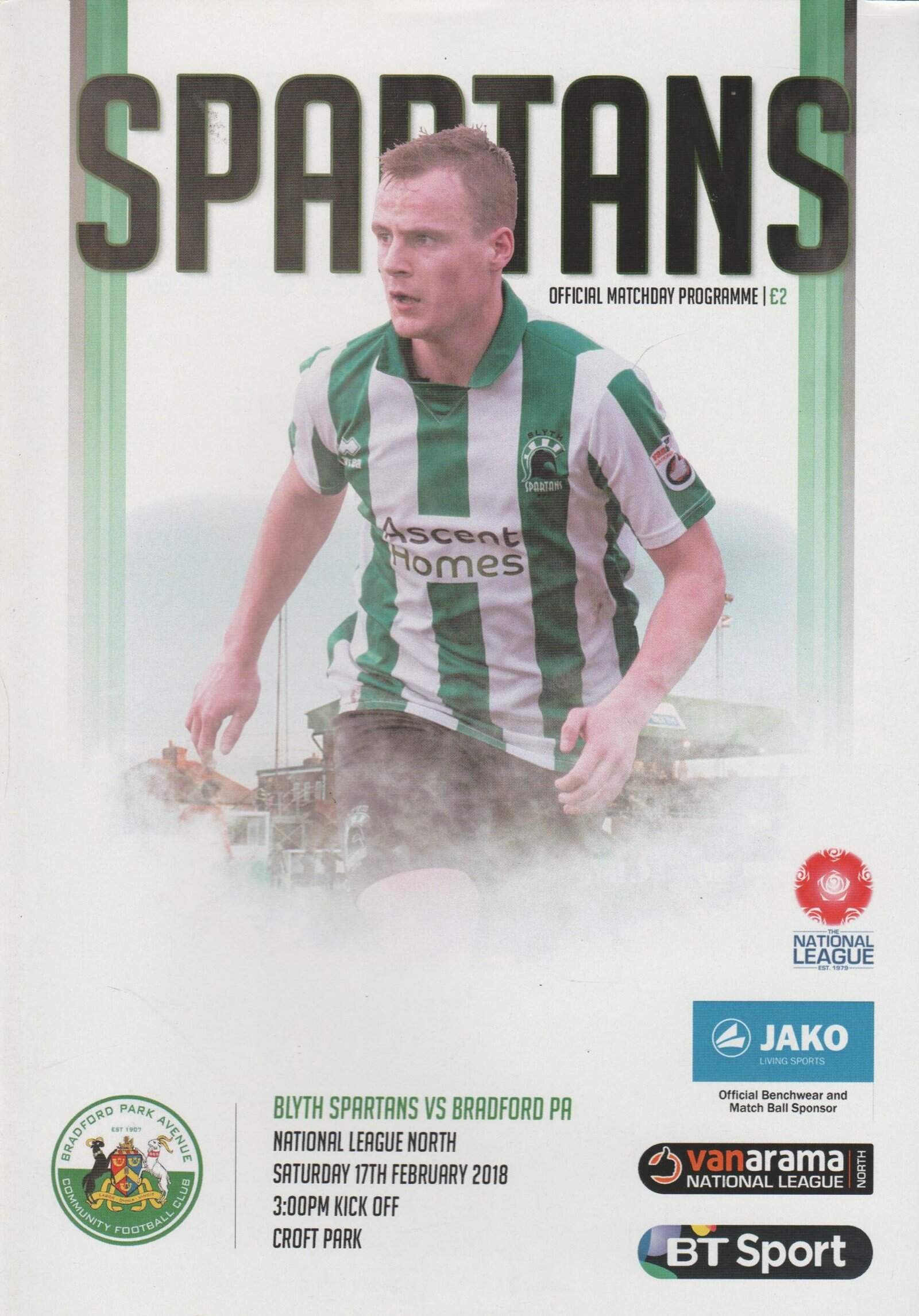 Match: Blyth Spartans vs Bradford PA Competition: Vanarama National League North Date: 17-Feb-2018 Comments: Rating: 4 Condition: Very good Weight in grams: 80