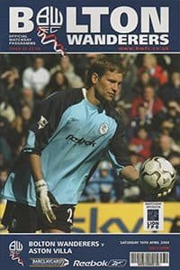 Match: Bolton Wanderers v Aston Villa Competition: Premier League Date: 10-04-2004 Comments: Rating: 5 Condition: Excellent Weight in grams: 200